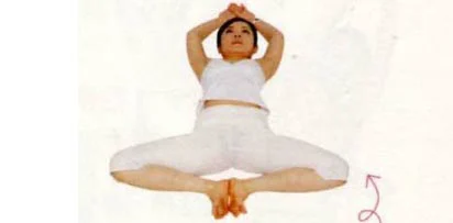 躺姿,腳掌對腳掌平方在地板,雙手往上拉長後放鬆,雙腳不用力,停留3-5分鐘。