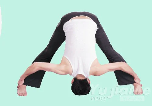 呼吸要點:俯身前調整好呼吸,頭頂地後深長地呼吸一次。