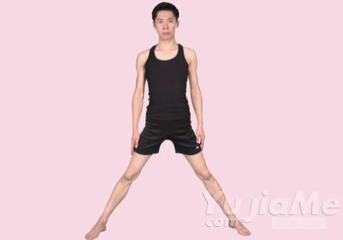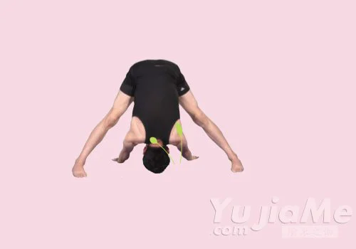 做這個練習時,臀部盡量翹起,雙腿盡可能地分開,如果頭部不能觸地,可增大兩腿間的距離,但要注意身體平衡,同時避免拉伸大腿。