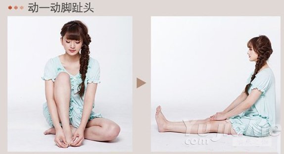 伸直雙腿正座將腳趾撐開弄成大大的剪刀、石頭、布形狀。動起來有困難的腳趾可以用手幫忙。