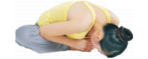 吸氣,向上伸展脊柱。呼氣,上身向前傾,直到腹部貼近雙腳,頭部接觸墊面。雙手手肘向兩側打開,將膝蓋壓向墊面。