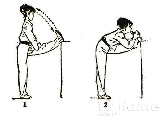 1、向前壓腿,就像晨練的人拉伸大腿一樣,找個陽台什麼的,腿往上一放,不同的是,上半身也要前傾,這樣上半身的膀胱經,督脈也能拉到。