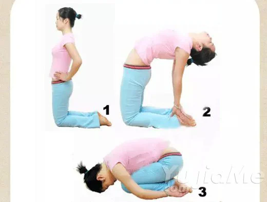 3、拉伸腹部,參見瑜伽駱駝式,不過一直這樣會比較累。大家可以採取上背部靠在椅子上的,就是把椅子斜放在背下面就可以了.每個動作4到5分鐘。既能拉胸部筋絡,還能減輕腦部缺血,美容、提升臉部肌肉。