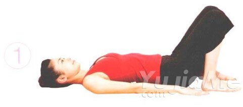 ① 仰臥,兩腳腳跟盡量靠近臀部。兩腳分開與腰同寬,雙腳平行。兩手放於體側,伸直。