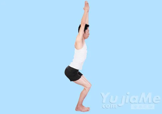 3、呼氣,屈膝,臀部往下坐,就像坐在椅子上;大腿應盡量與地面保持平行,正常呼吸,保持30秒鐘左右;吸氣,放下兩臂,恢復站姿;反覆練習。