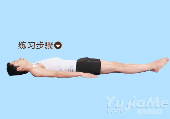 1、仰臥在墊子上,雙眼微閉,兩手放在身體兩側,兩腳伸直,腳尖併攏;正常呼吸,放鬆全身。
