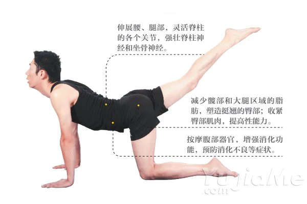 體式介紹:這個體式效仿老虎的動作,除了能讓身體更強壯和結實,它還是一個極好的產後練習動作。經常練習,你會發現全身的肌肉線條變得更加緊實和流暢。