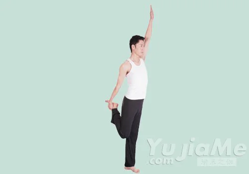 體式介紹:舞者式是高難度的平衡動作,盡顯均衡力與優難之態。練習時要調動腰、背和臀部的力量去控制平衡,以增強身體的協調性。