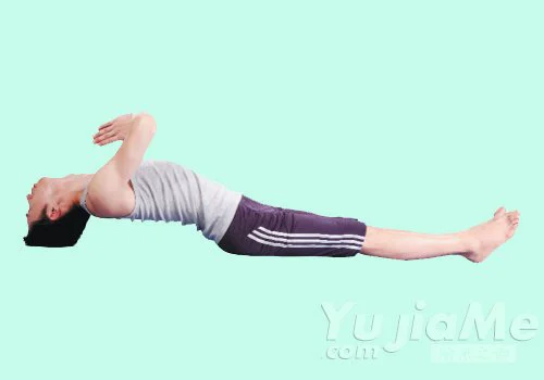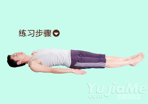 1、仰臥在墊子上,雙眼微閉,兩手放在身體兩側,兩腳伸直,腳尖併攏;正常呼吸,放鬆全身。