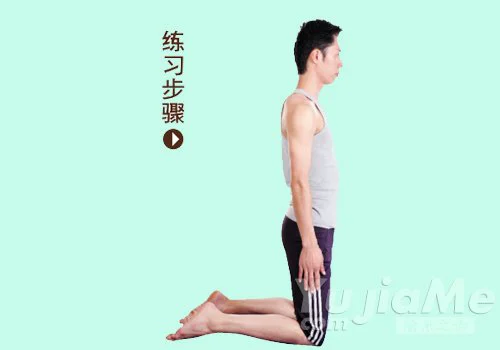 1、跪下,小腿平放在地上,膝蓋打開至臀寬,腳掌朝上;大腿及軀幹呈一直線,與地面成90度角;雙手放在體側,自然地呼吸。