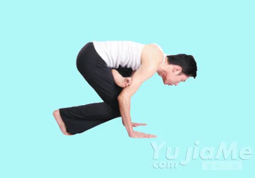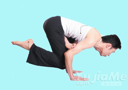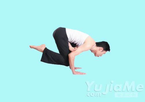 體式介招:在這個體式中,身體像一隻袋鼠,因此而得名。這個體式是在半蓮花加強前曲伸展的基礎上,單腳離地,身體僅靠雙手支撐地面而成。
