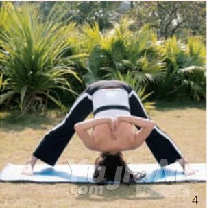 做這個動作時雙腿盡量分開,注意保持平衡。初練者可能無法一下子就做到在背後合掌,不必勉強馬上做到位,應循序漸進,一步步來。