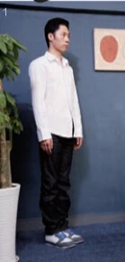 雙腿要保持筆直站立的狀態,下俯時,身體和雙腿形成直角,背部盡量不要弓起;在保持姿勢的過程中,請注意呼吸保持正常。
