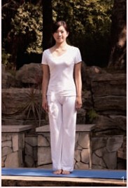 1、直立,頭、頸、腰椎呈一條直線,雙腳併攏,雙臂自然垂放於體側;全身放鬆,自然呼吸。