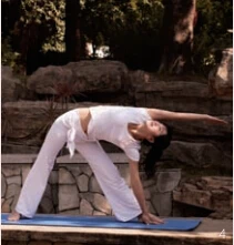 2、雙臂在體後交叉,右手背貼在右側腰部;吸氣,背部向上伸展。