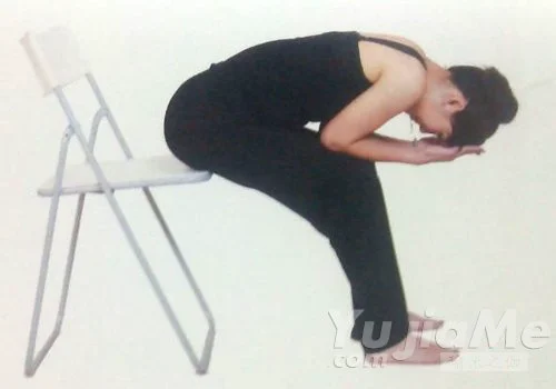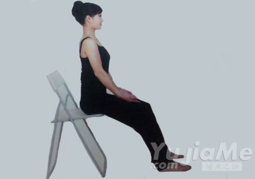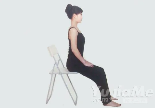 1、自然坐於椅子1/3處,吸氣,上身挺直,雙肩放鬆,雙腳打開與髖骨同寬,雙手輕輕放於腿上,掌心向上,小腹內縮。靜下心來,自然呼吸10次。