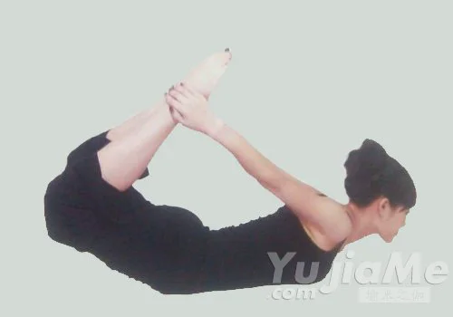 7、俯臥,雙手分別握住雙腳腳踝,呈弓式。腹部支撐地面,像小木馬前後搖擺身體。