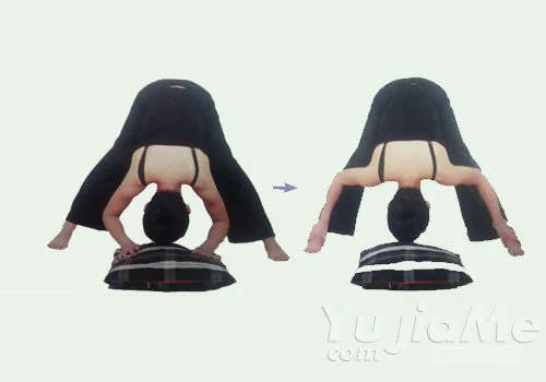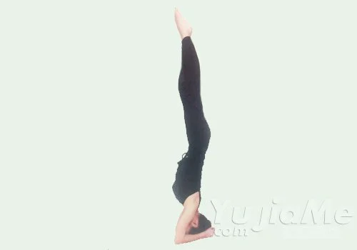 5、下蹲,雙手抱頭,手指交叉,雙肘自然分開。低頭,使前臂著地,手背著地,慢慢將重心前移到頭部,雙腿向後延伸伸直,慢慢提起至倒立姿勢,堅持半分鐘。下落雙腿時,肩膀保持向上提,頭部放鬆在地面上。初學者應在老師指導下嘗試這一動作。如果感覺吃力,借助牆體練習。