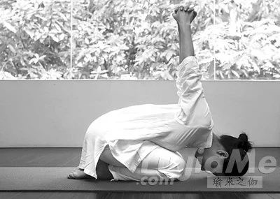 做法:雙膝跪坐,身體向前將腹部貼靠在大腿上,額頭觸地。臀部盡量坐在腳跟上。兩手背後十指交扣,上提手臂,保持十個呼吸。交換手指握法,重複一次。