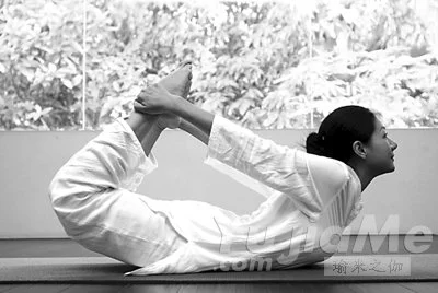 做法:俯臥在地面上,彎曲雙腿,兩手握住腳踝,先抬起雙腿,再抬起頭部和胸廓。保持五個呼吸,重複一次。如有難度,可以單腿做,另一條腿伸直。