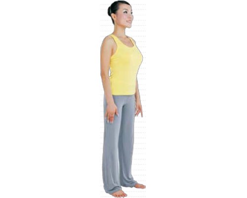 自然站立,雙手自然垂放在身體兩側,眼睛平視前方。