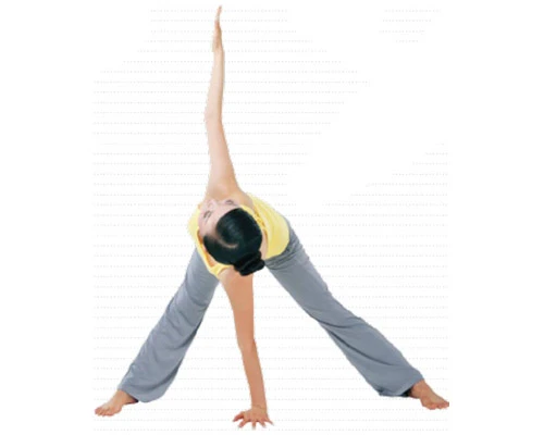 呼氣,右手落於墊面,右手手掌撐地,左臂向上伸展,左手指向天空。頭部向後上方轉動,眼睛看向左手指尖的方向,保持這個姿勢30秒。