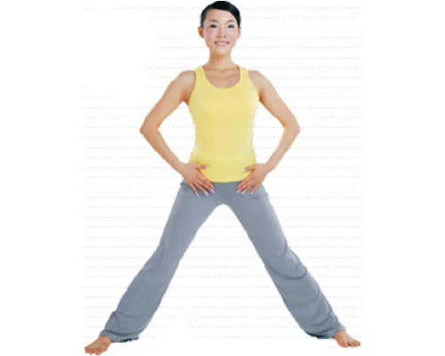 雙腿分開大約兩肩寬的距離,雙手放於rm關節處,兩眼平視前方。