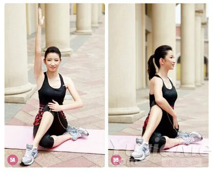 坐式,左腳至於右側大腿內側,右側腳回勾,上身前屈雙手抓右腳。換另一側進行。膝蓋骨要上提,大腿肌肉始終繃緊。