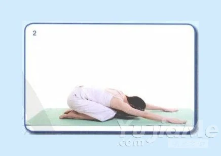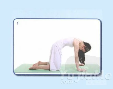 1、吐氣時,把背拱起,眼睛看肚臍,吸一口氣,將背部向外展開。