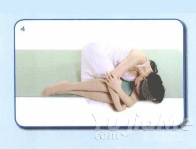 4、吐氣時,將手腳卷抱進來,整個身體縮到最小。
