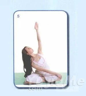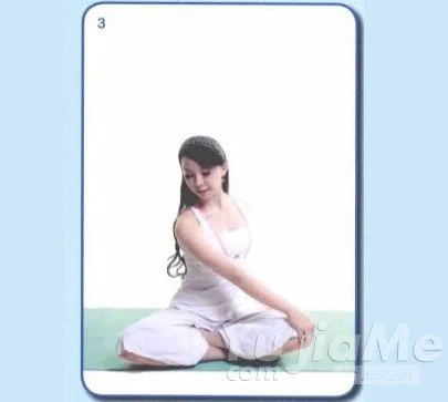 5、吐氣,將身體從右下放鬆捲起回到中央。
