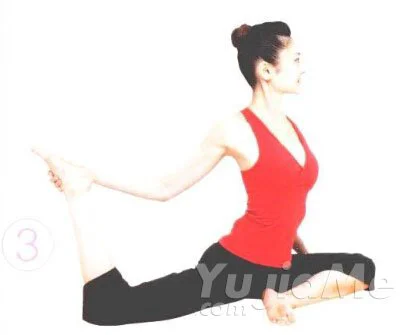 ③ 彎曲右腿,右手從內側抓住腳面。