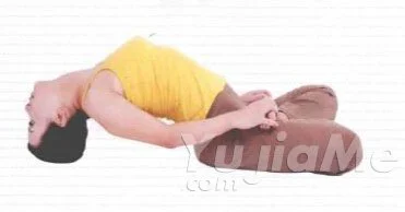 2、雙手在胸前交疊,大拇指交叉,十指抱住頸部,頭部後仰,盡量放鬆脊柱。