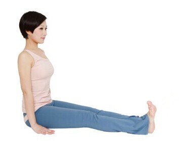 1.坐姿,雙腿伸直併攏,挺直腰背,雙臂放於身體兩側,掌心朝下