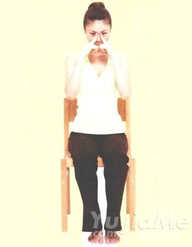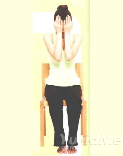 對於上班族來說,一天中的大部分時間是在辦公室度過的,為了有效率的工作,應該練習一分半鐘瑜伽,輕鬆地改變心情。不讓疲勞積累在體內,才能心情舒暢地工作。 長時間對著電腦眼部容易疲勞,這時可以手捂眼和按摩穴位紓解疲勞。另外,解除肩部和腰部疲勞的動作,坐著也可以完成。所以,如果感到疲勞了就可以反覆練習這些動作。 手掌捂眼法 ① 兩手摩擦,直到手掌發熱。 ② 閉眼,雙手輕輕地貼住眼睛。通過手掌的熱度,漸漸紓解眼睛部位的緊張,讓眼部放鬆。 穴位按摩法 ③ 指間按壓太陽穴,持續3秒鐘後放鬆,反覆做2次。 ④ 手指輕輕按壓臉頰下方。持續3秒鐘後放鬆,反覆做2次。 ⑤ 閉眼,手指按住眉根附近,輕輕向上推。感覺到眼睛充分放鬆的同時,反覆放鬆地自然呼吸。