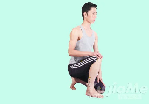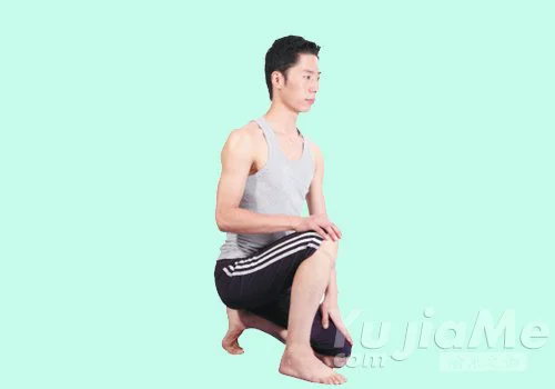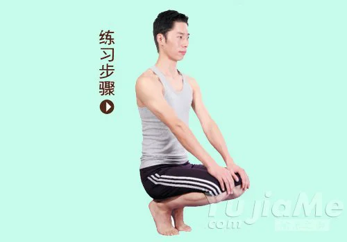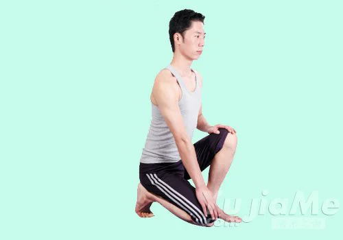體式介紹:這個體式是鴨子似的蹲步行走,可擠壓按摩盆腔內的臟器,同時還能加速雙腿的血液循環。