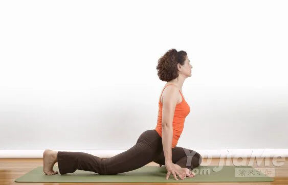 長時間坐著臀部肌肉崩緊。改善身體的柔韌性和臀部的延展性,拉伸胸部和肩膀肌肉,試試半個鴿子的姿勢。左腿彎成90度角,來回滑動右腿,盡量坐直,呼氣、胸部向前挺直,雙臂感覺有很大的拉伸力。