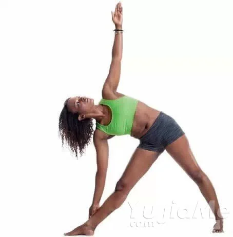 雙腳分開約一條腿長站立。然後將左腳向外旋轉90度,右腳向內轉45度,保持兩腳腳跟在一條直線上。抬起雙臂,與地面平行。身體向左邊彎曲,將左臂延展至地面左腳踝外側。右手臂則指向天空,左右肩呈垂直狀。保持重心平衡並將腿打直。保持這個動作30秒,然後另外一邊重複同樣的動作。