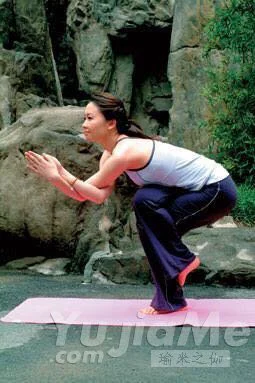 step3:調整呼吸,深吸氣挺直背部緩慢下蹲,保持好平衡後,上身向前,讓腹部靠近大腿,感受到腰背的拉伸。保持15秒後,恢復初始姿勢,反方向進行。