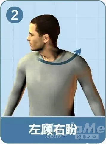 2、頭向左轉90度,停留3秒,再向右轉,停留3秒。做兩個8拍。