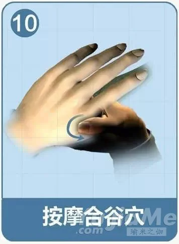 10、合谷穴在大拇指和食指中間的虎口處,把拇指 和食指分開,用另一手的大拇指經常按摩該處。可以治療牙疼,眼睛疲勞頭痛,咽喉腫痛,腹痛等等病症,對身體有好處。