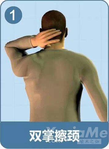 1、用左手掌來回摩擦頸部,口中默念8下後,開始 捏後頸。然後換右手。有助於頸部放鬆。