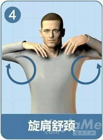4、雙手置兩側肩部,掌心向下,兩臂先由後向前旋轉20、30次,再由前向後旋轉20-30次。