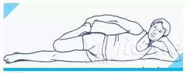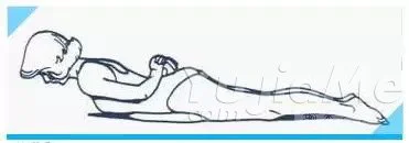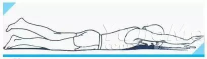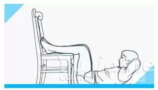 將足置於高位,手臂放於頸後或胸前,整個骨盆放平,抬高頭部和肩關節。