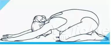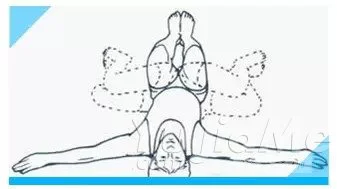 坐位膝關節分開,身體前彎,保持對下腰部舒適的牽伸。