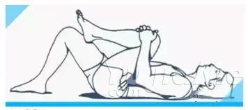 牽拉一側膝關節直至感覺到下腰部及臀部適度的牽伸,另側膝關節重複相同動作。