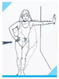 一側上肢支撐牆面,另側上肢輔助髖關節緩慢下牆面活動。