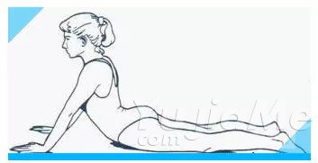 上半身如圖示位置,保持髖關節緊貼地面,同時保持下腰部及臀部放鬆。