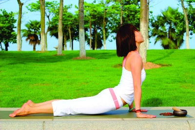 動作:雙手和足尖支撐身體,腿部盡量伸展,吸氣時頭部向後仰,使頸部前側充分拉伸,手臂與地面垂直,呼氣的時候頭部慢慢放鬆回復到正常位置。