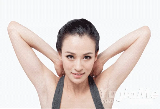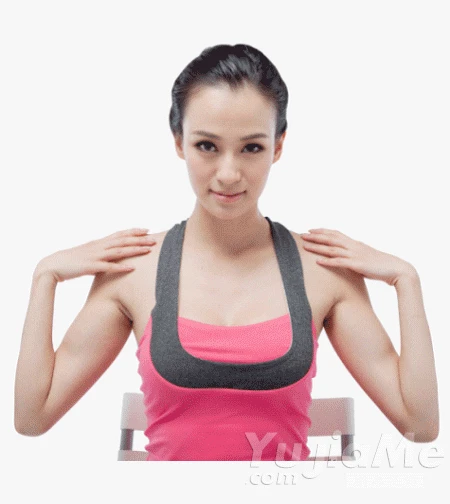 5、雙手移至頸椎後側,雙手肘關節盡量後張。